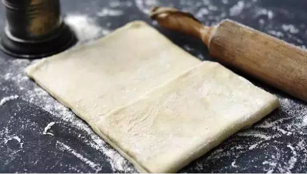 4.将买来的千层酥皮擀开擀匀,切成长方条备用