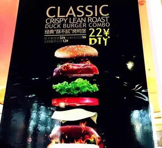 大董拿着一个看起来和洋快餐几乎无异的烤鸭汉堡,打开给记者看着里面分量十足的鸭肉,他继续介绍道:“目前,门店内一个烤鸭汉堡单点的价格暂定为22元,加上饮料、薯条等快餐标配,套餐价格在30-40元左右。除了烤鸭汉堡之外,我们还提供鲜肉月饼、炸酱意大利面等快餐,消费者的选择很丰富。”