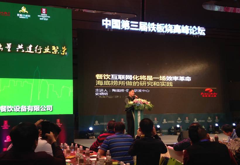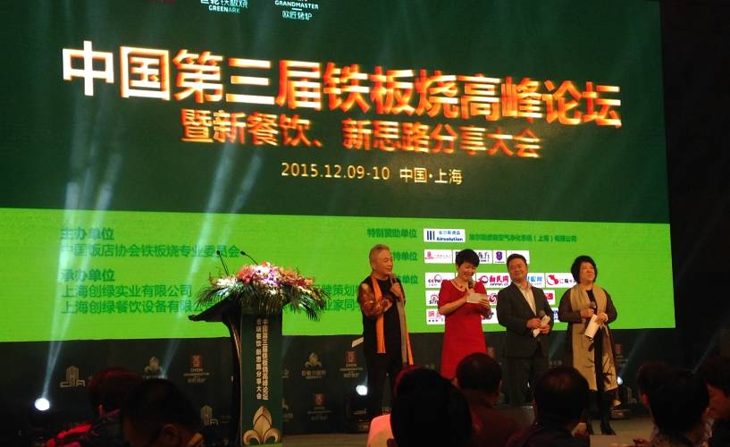 【餐饮界消息】2015年12月9日至10日,为期2天的中国中国第三届铁板烧高峰论坛暨新餐饮、新思路分享大会于上海卓美亚喜马拉雅酒店圆满结束。中国饭店协会副会长郁为泽、副秘书长丁志刚、来自香港的食神以及雕爷牛腩的配方大师戴龙、创绿铁板烧董事长詹咏梅女士、温度铁板烧董事长周艳、57℃湘董事长湘旺峥嵘、《餐饮界》创始人鹤九应邀参与此次论坛,现场演讲嘉宾带来了精彩的干货分享,为经济寒冬之下的中国餐饮业指明了方向。