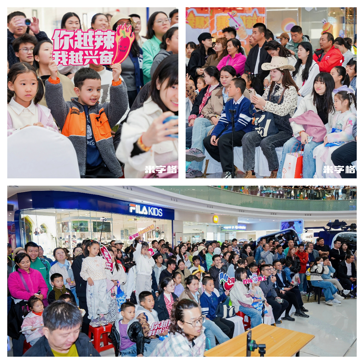 10月5日的万达广场,因为米字格爆辣挑战赛的举办,变成了全城最火热的地方。下午四点不到,中庭已经被人潮层层包围,后来的观众不得不站在二楼、三楼的环形走廊上翘首以盼。现场工作人员坦言:"我们预想到会火爆,但没想到这么火爆!从一楼一直排到三楼,现场气氛堪比明星演唱会"