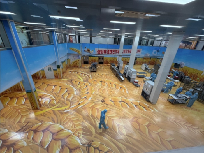 步入生产区,场景悄然转变。以“蓝天白云、金色麦浪”为主题,车间一改常见面貌,还原为女工们熟悉的田间地头、麦田场景。这既贴近员工的生命记忆、传递真切关怀,也让每位工作者能以“为家人做早点”的心意,专注对待手中食材。