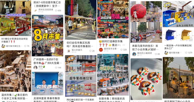 年轻人的三大网络聚集地:小红书上,“市集”有162万+篇笔记;抖音上,各类关于市集、市集打卡、市集摆摊的话题,动辄拥有数千万甚至上亿的播放量;微博上,热衷于“赶集”的年轻人们撑起了多个阅读量过亿的话题。